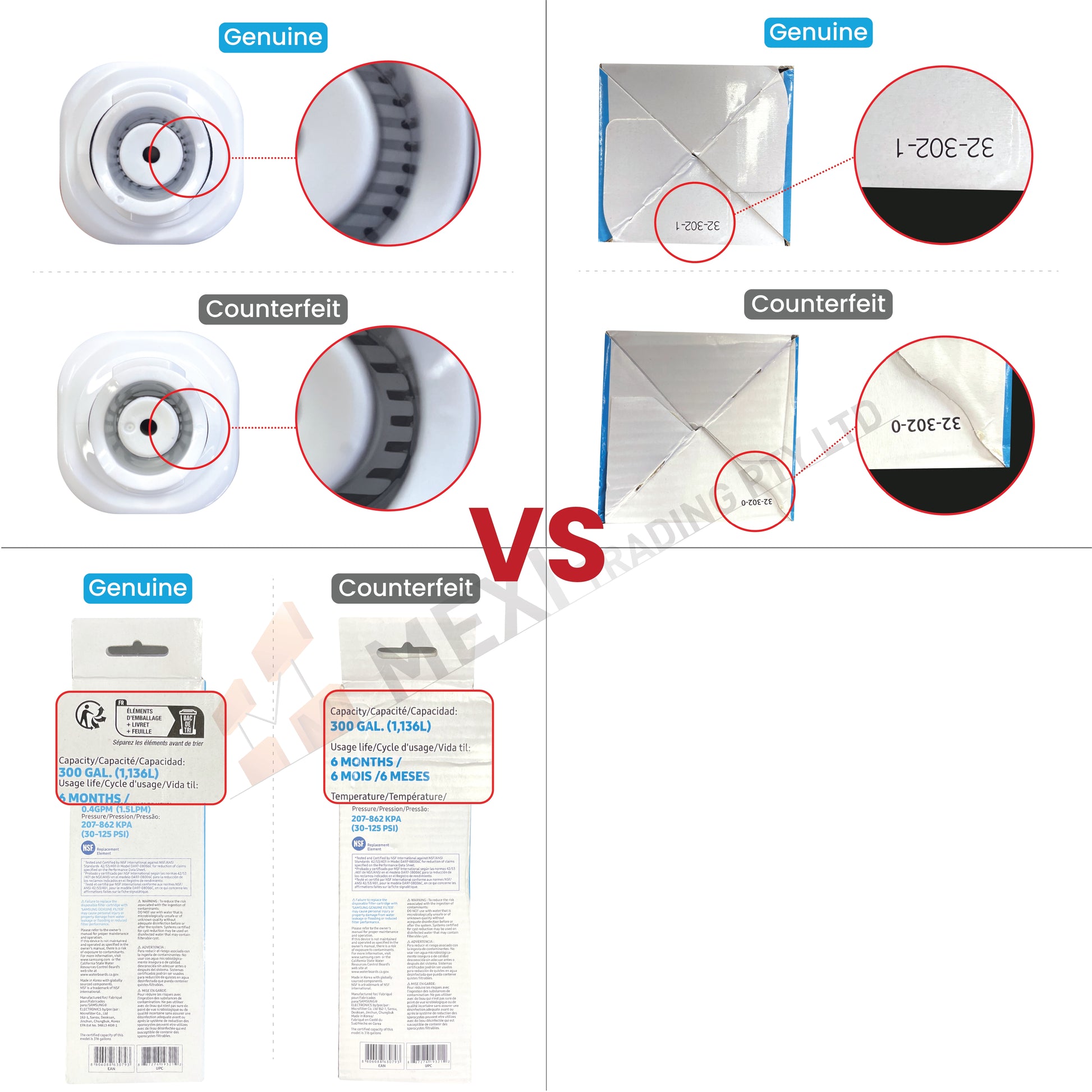 Latest Samsung Genuine VS Counterfeit filter comparison chart